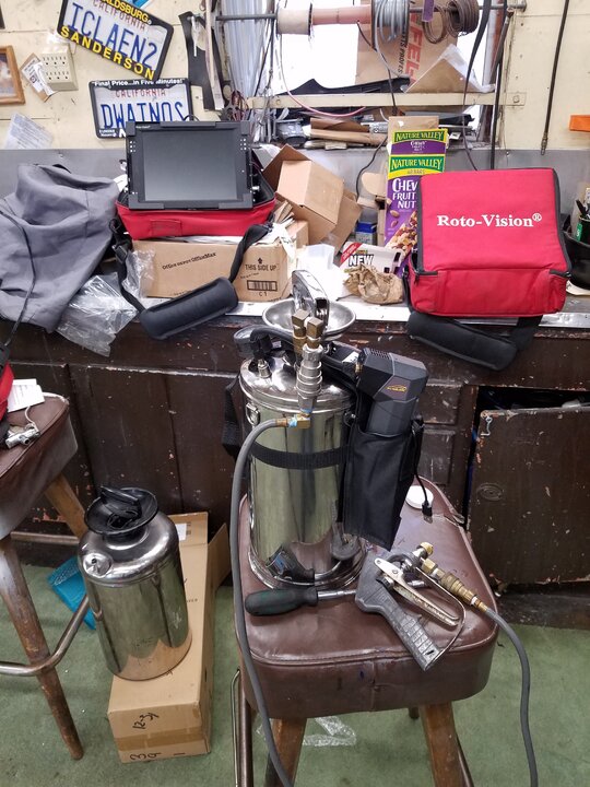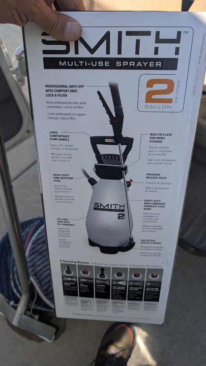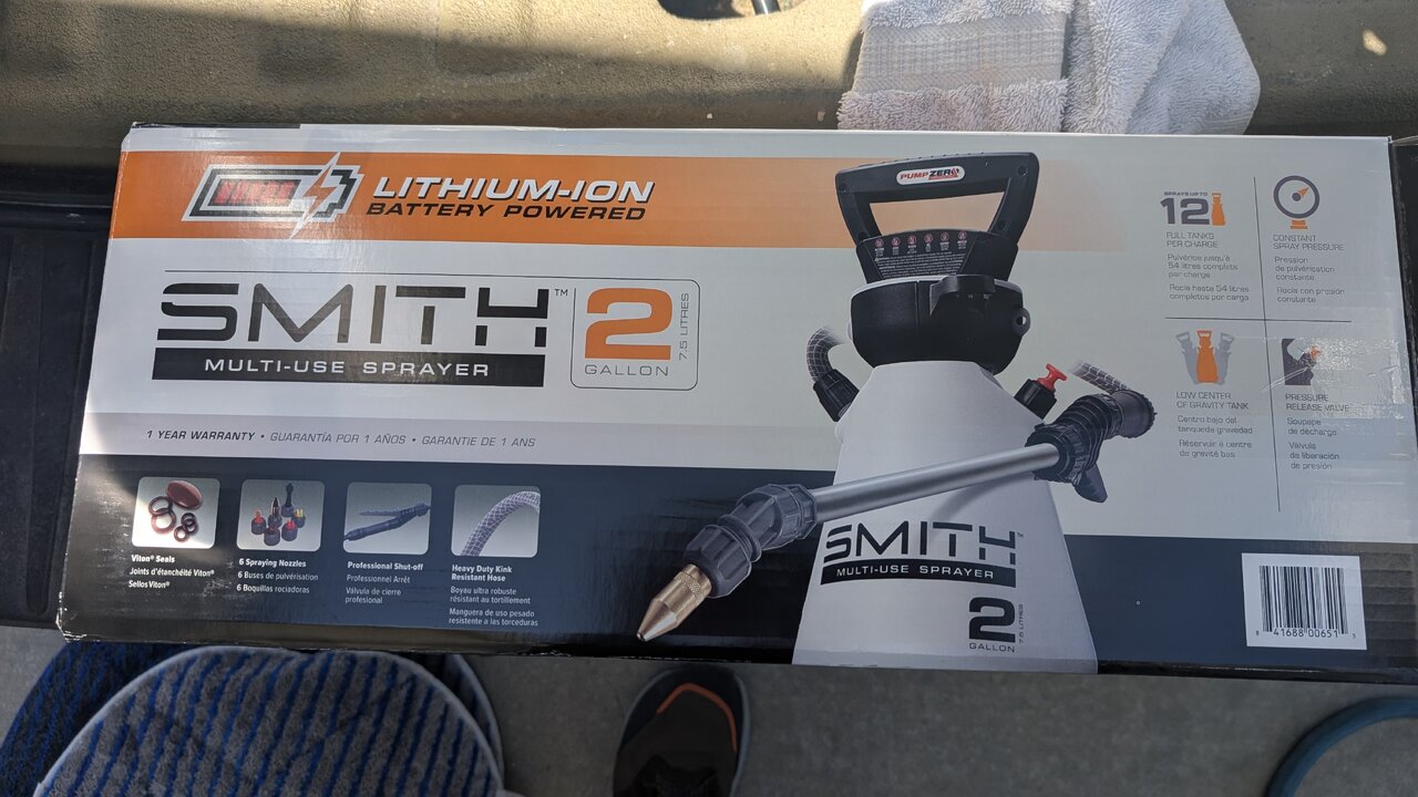 Electric sprayers are awesome when you find the right one 😉. Extra battery in the trucks too, though they last about a week with a full schedule. You can also cut the cheaper wands off and put a nice spray gun with some barb to 1/4npt connectors.
