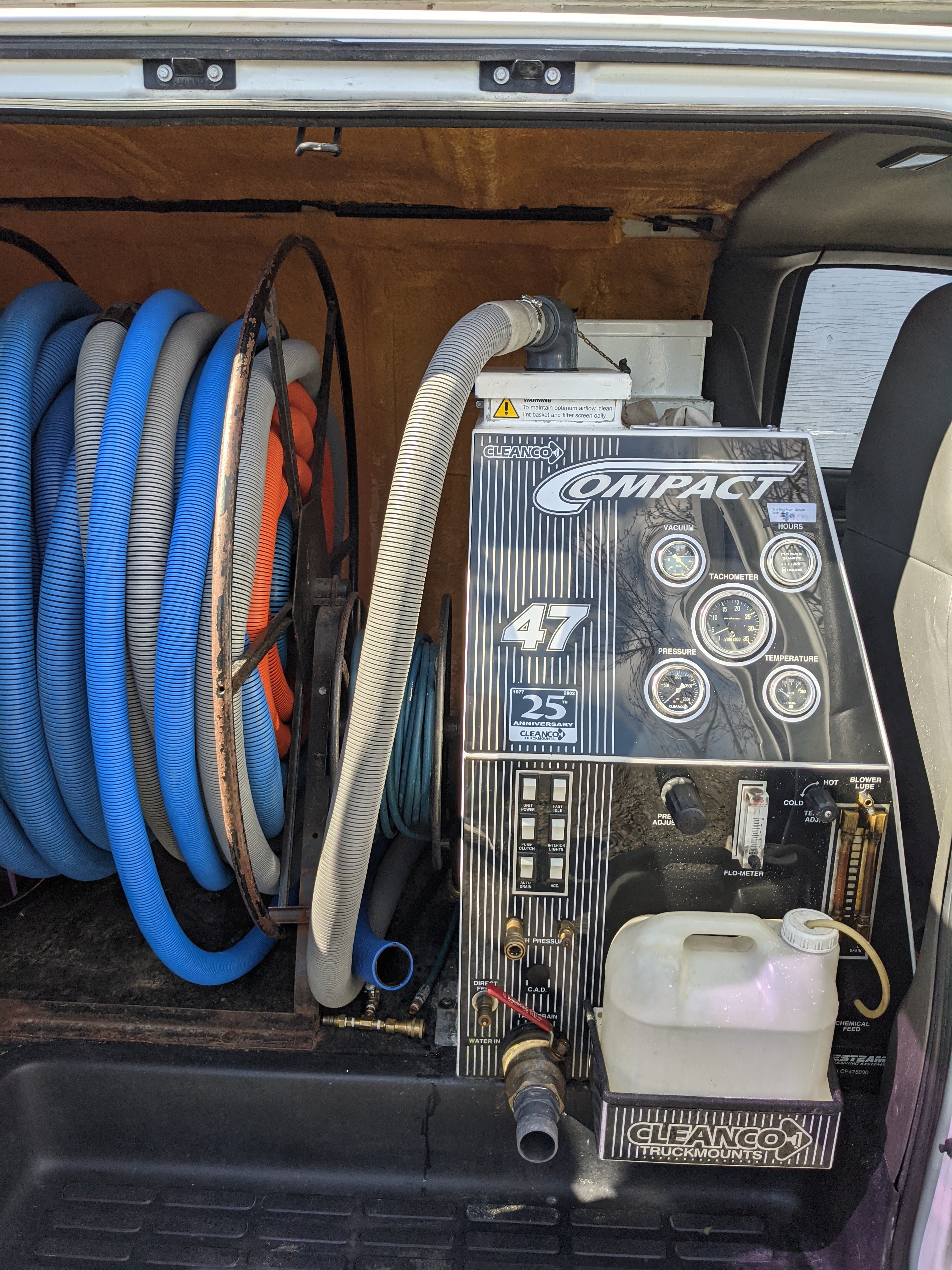$300. They were just supposed to do the exterior but did the cabin anyway. All of the dash and door vinyl, windshield, etc. The van still had some old lettering and a lot of sign residue and oxidized paint. They even did some paint touch ups. Better than I thought it would come out. Now time for some new signs.