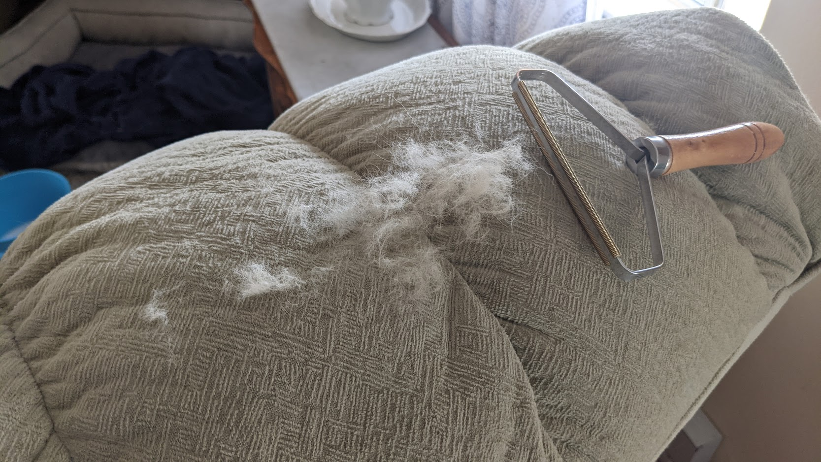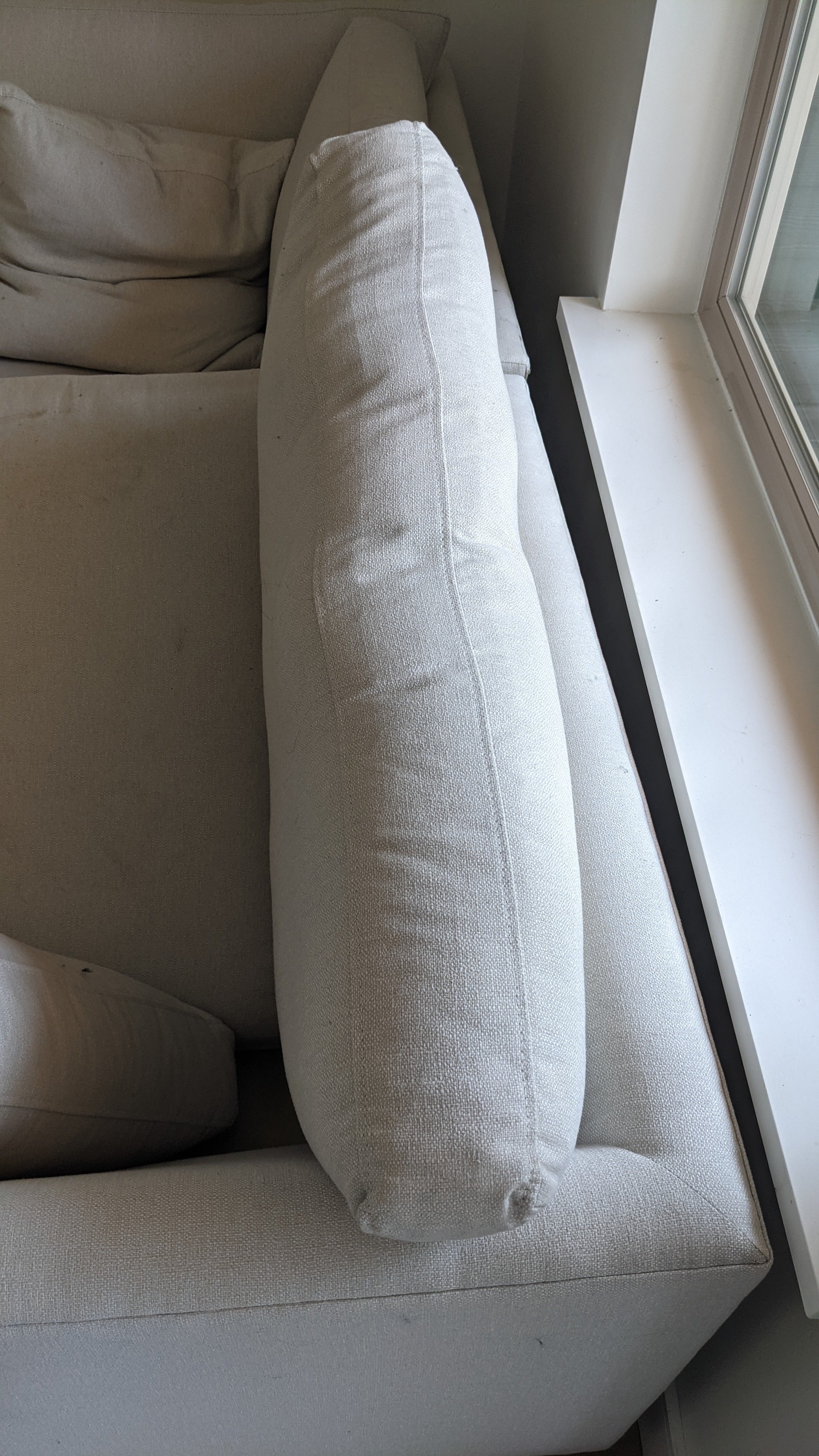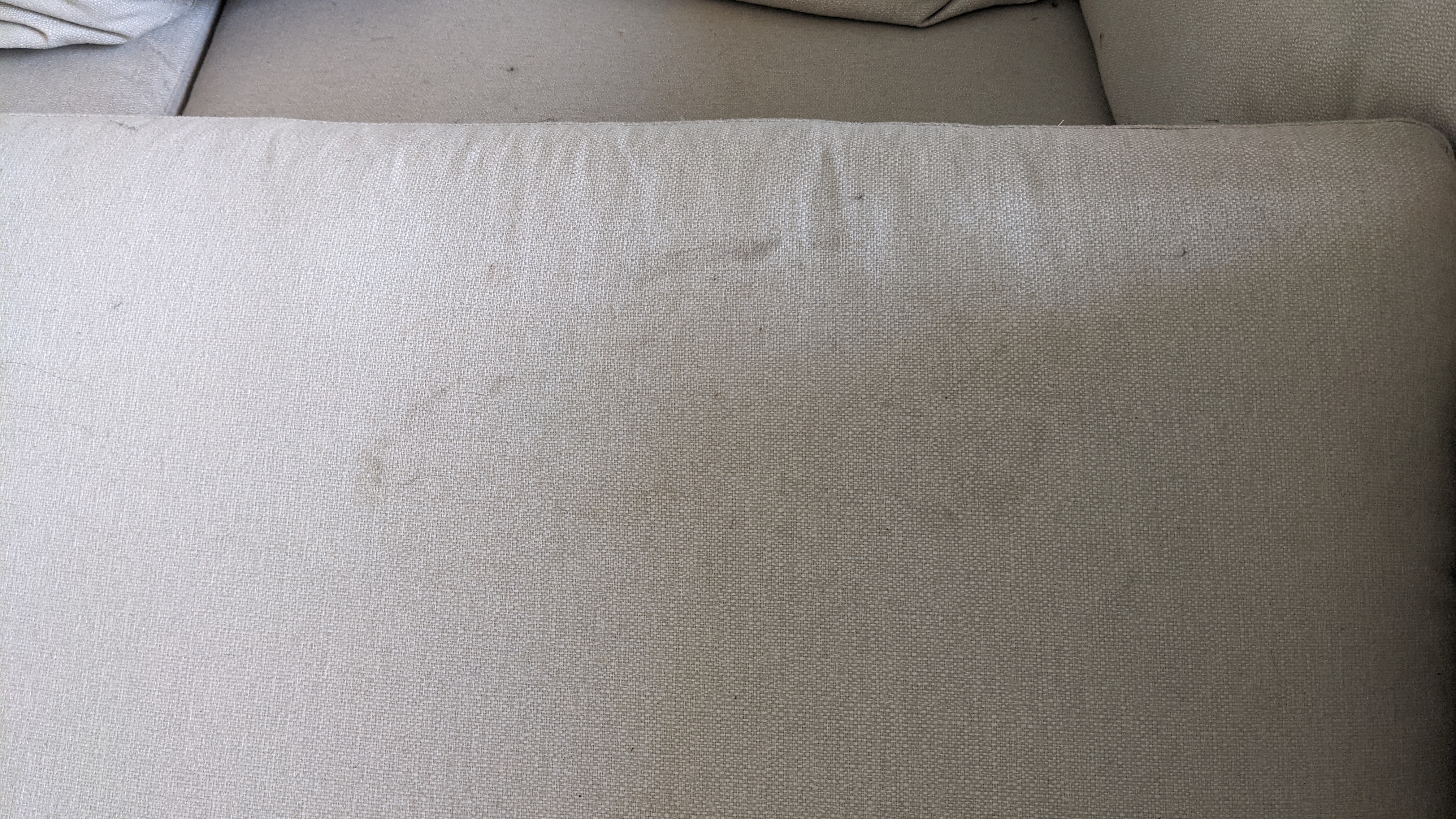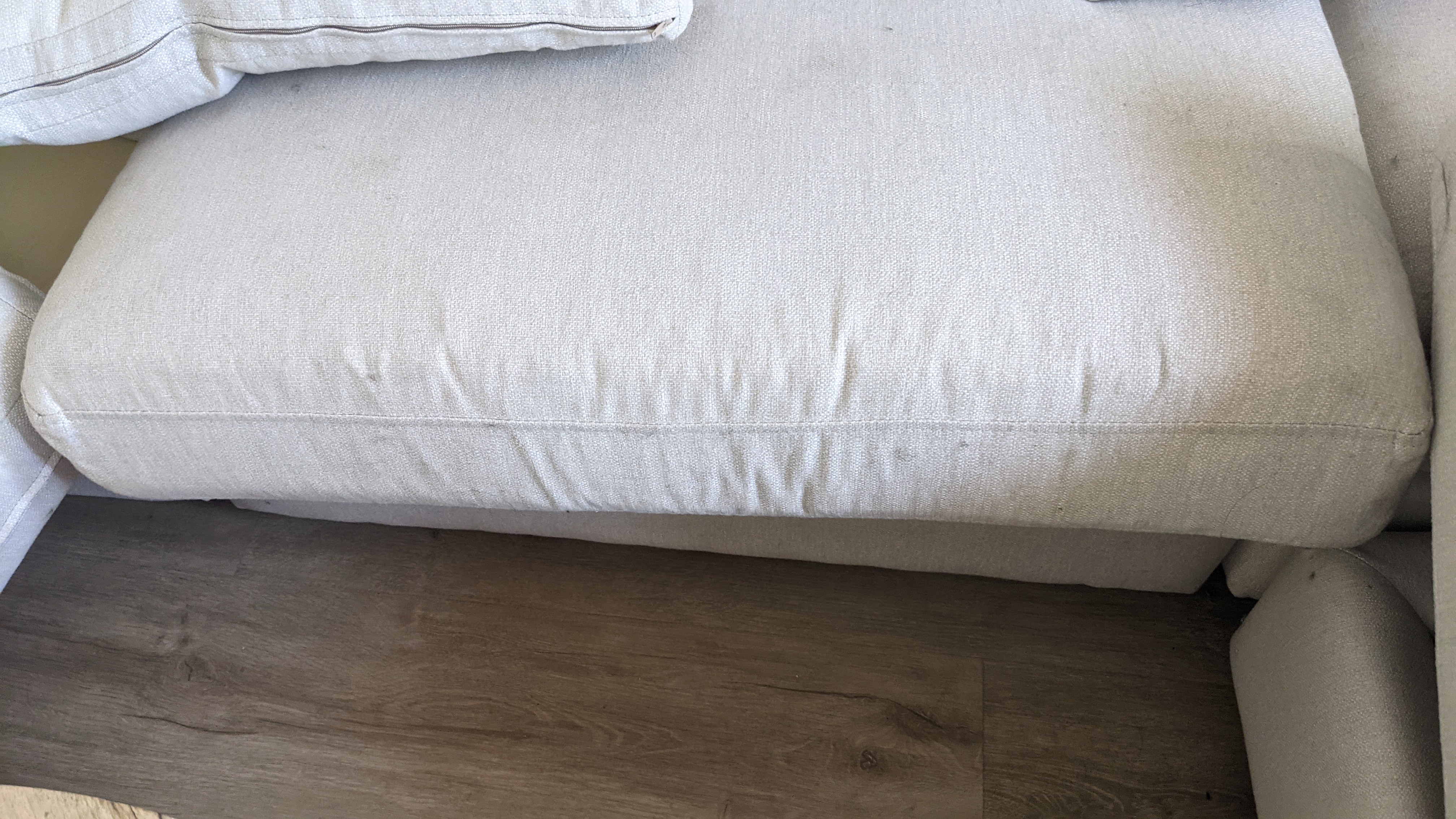 She tried her best to convince me that everything was brand new, delivered last week.....6 months of crumbs under every cushion, 3 types of pet hair, dusty, loads of spots, wear, fd up fiberfill, but she stuck to her guns