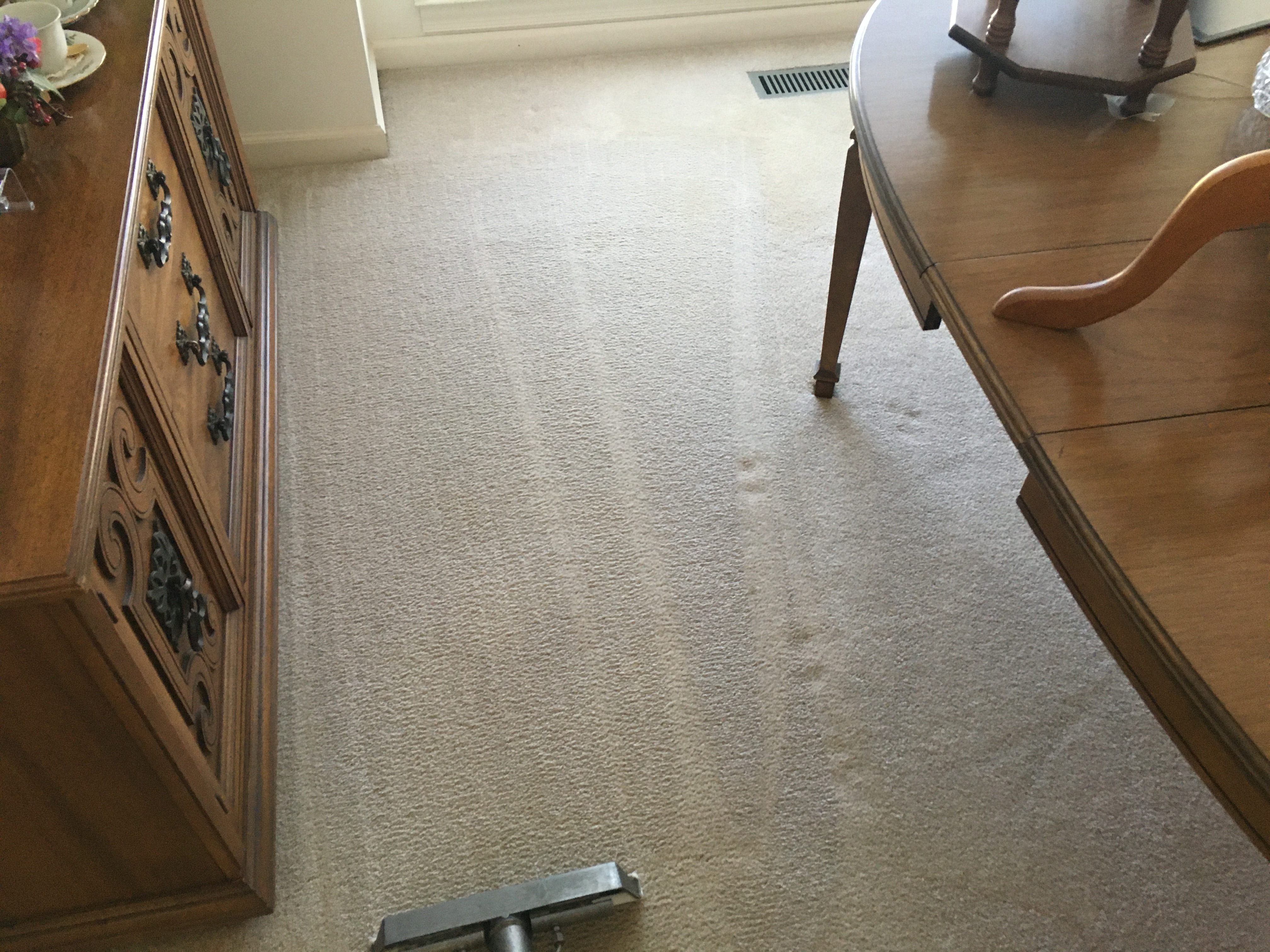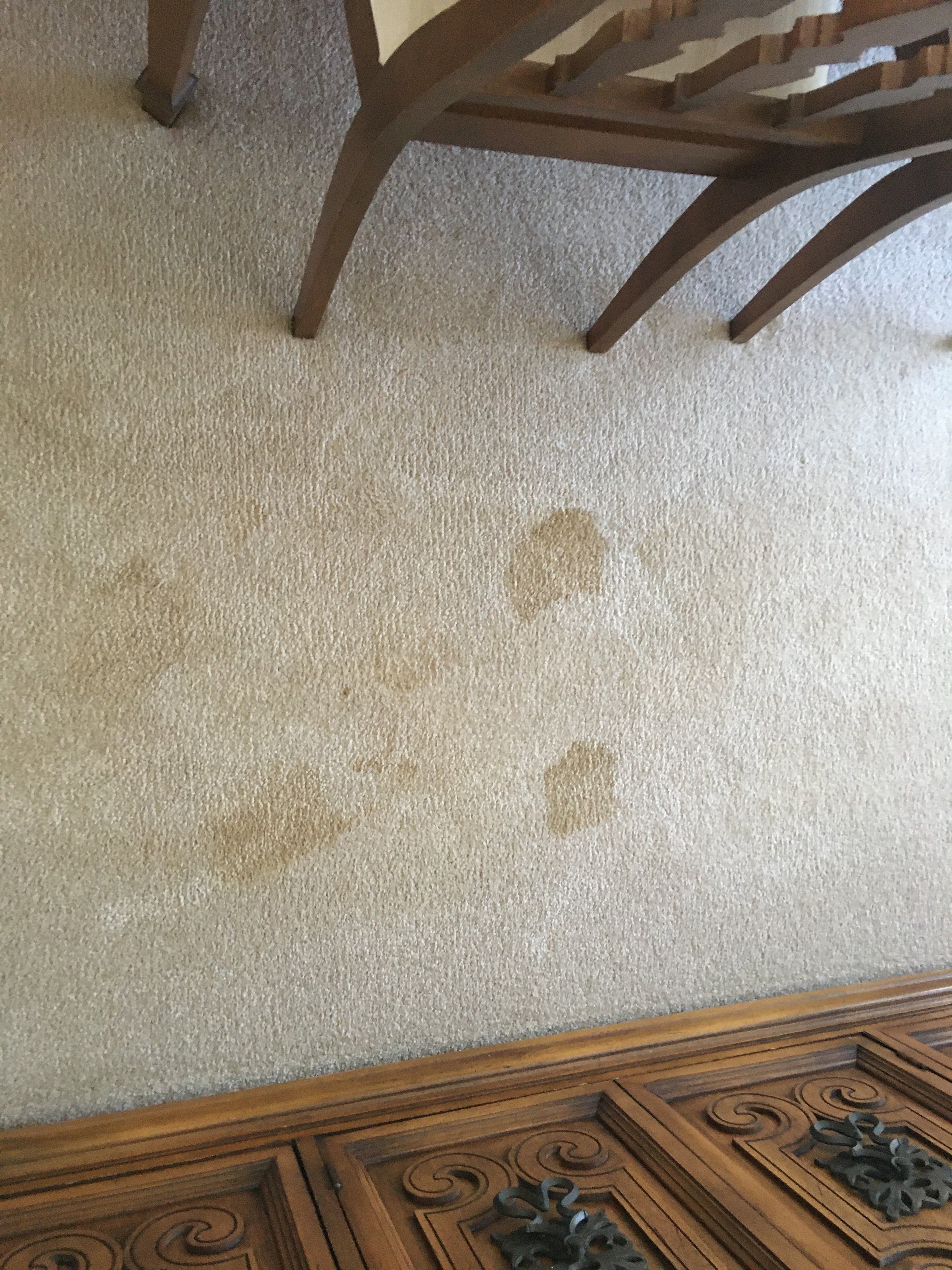It was fully saturated and it lightened up just a little bit and kept pulling urine up from the pad. I told her it needed to be cut out and replaced with a spare carpet and pad.