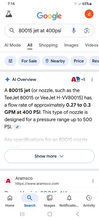 You would have to recalculate for the 3/8" solution hose again, if you want to be so factual. It's possible that we used to mistakenly refer to jet opening as flow, e.g., 6×9502 would equal to #12. I promise to give you exact numbers once I have more time and do the bucket test 😉.