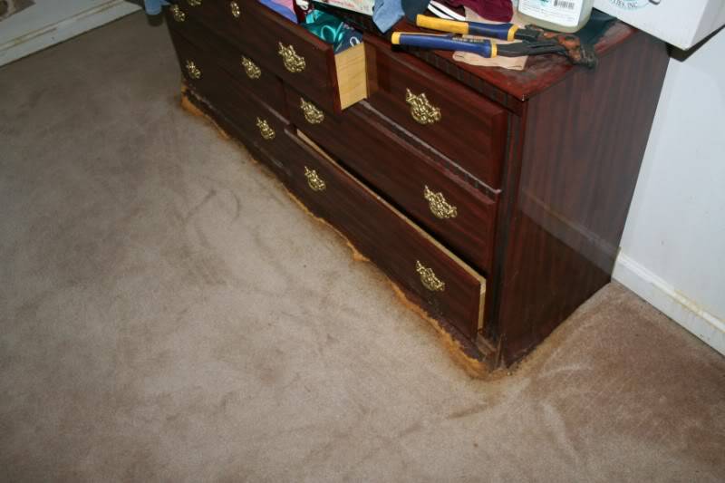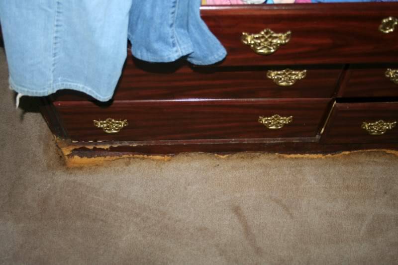 The laminates in the kitchen are all bubbled up and piss is leaking from under them. Speaking of which every baseboard in the house is completely saturated. Same with the walls a couple inches above.